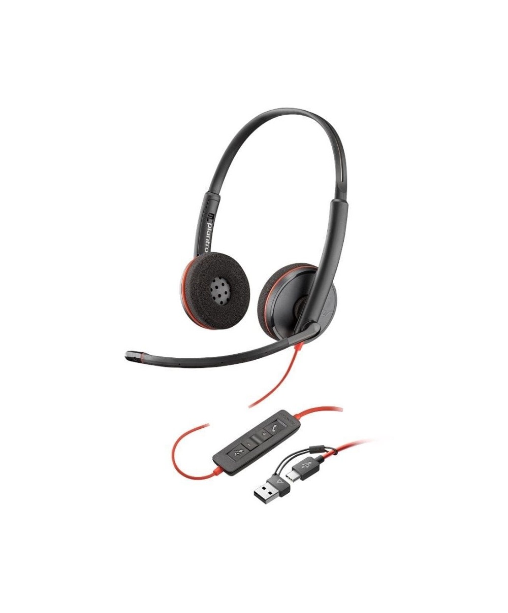 Auriculares estéreo USB-C Poly Blackwire 3220 negros + adaptador USB-C/A (a granel)