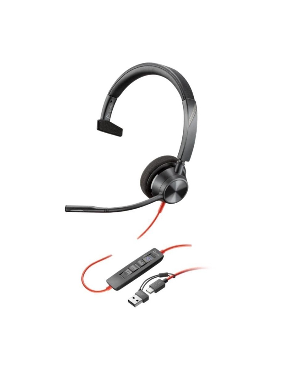 Auriculares monoaurales USB-C Poly Blackwire 3310 con certificación de Microsoft Teams + adaptador USB-C/A