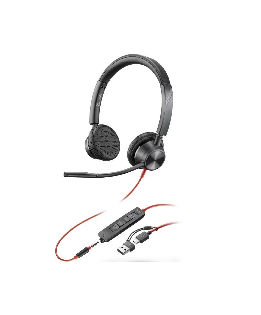 Auriculares estéreo Poly Blackwire 3325 con certificación Microsoft Teams USB-C + Conector de 3,5 mm + Adaptador USB-C/A