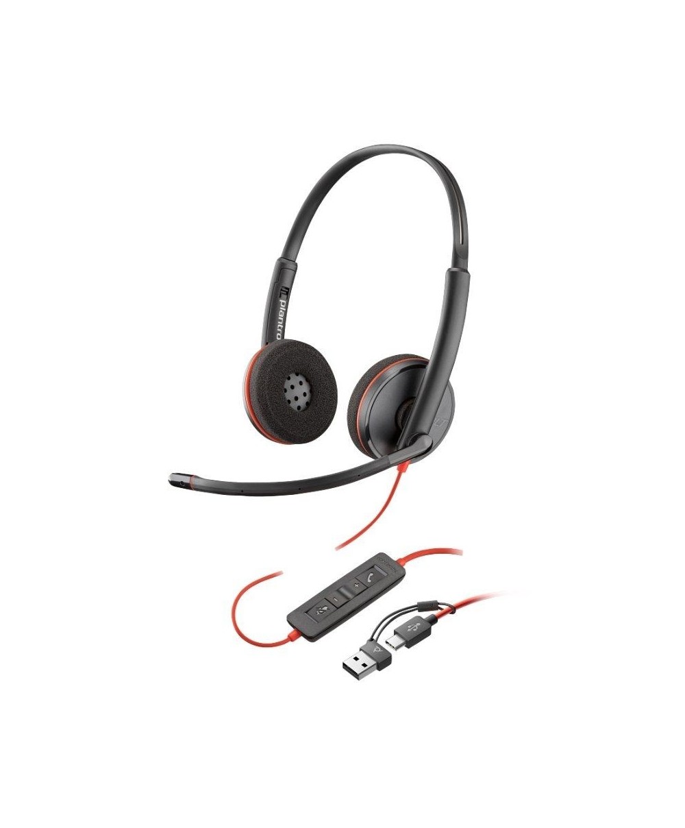 Auriculares estéreo USB-C Poly Blackwire 3220 + adaptador USB-C/A (a granel)