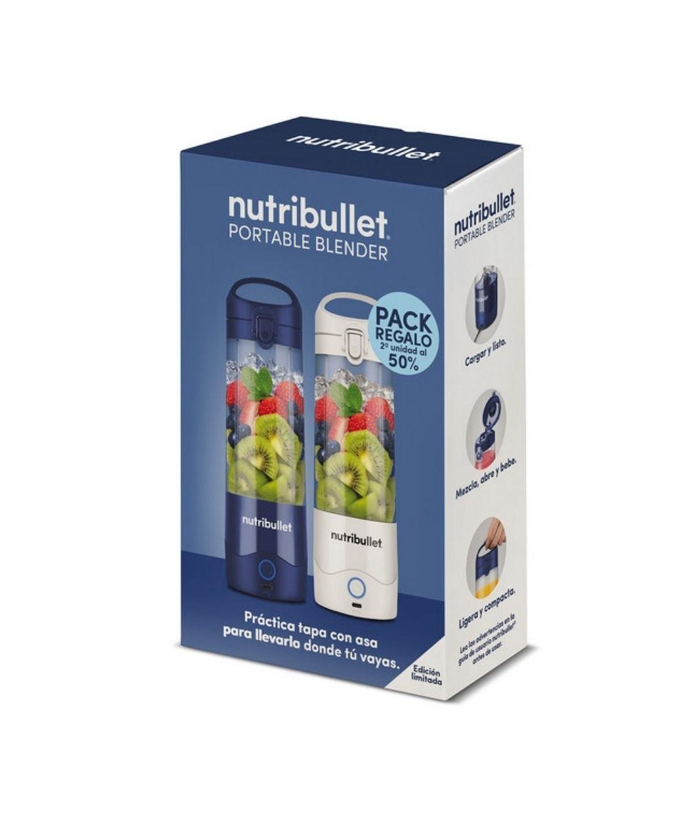 NUTRIBULLET Bundle 2 Batidoras personal BLANCA y AZUL MARINO 2000mAh bateria, cuchilla extractora de acero inox, vaso sin BPA de 475ml y carga mediante USB-Cde