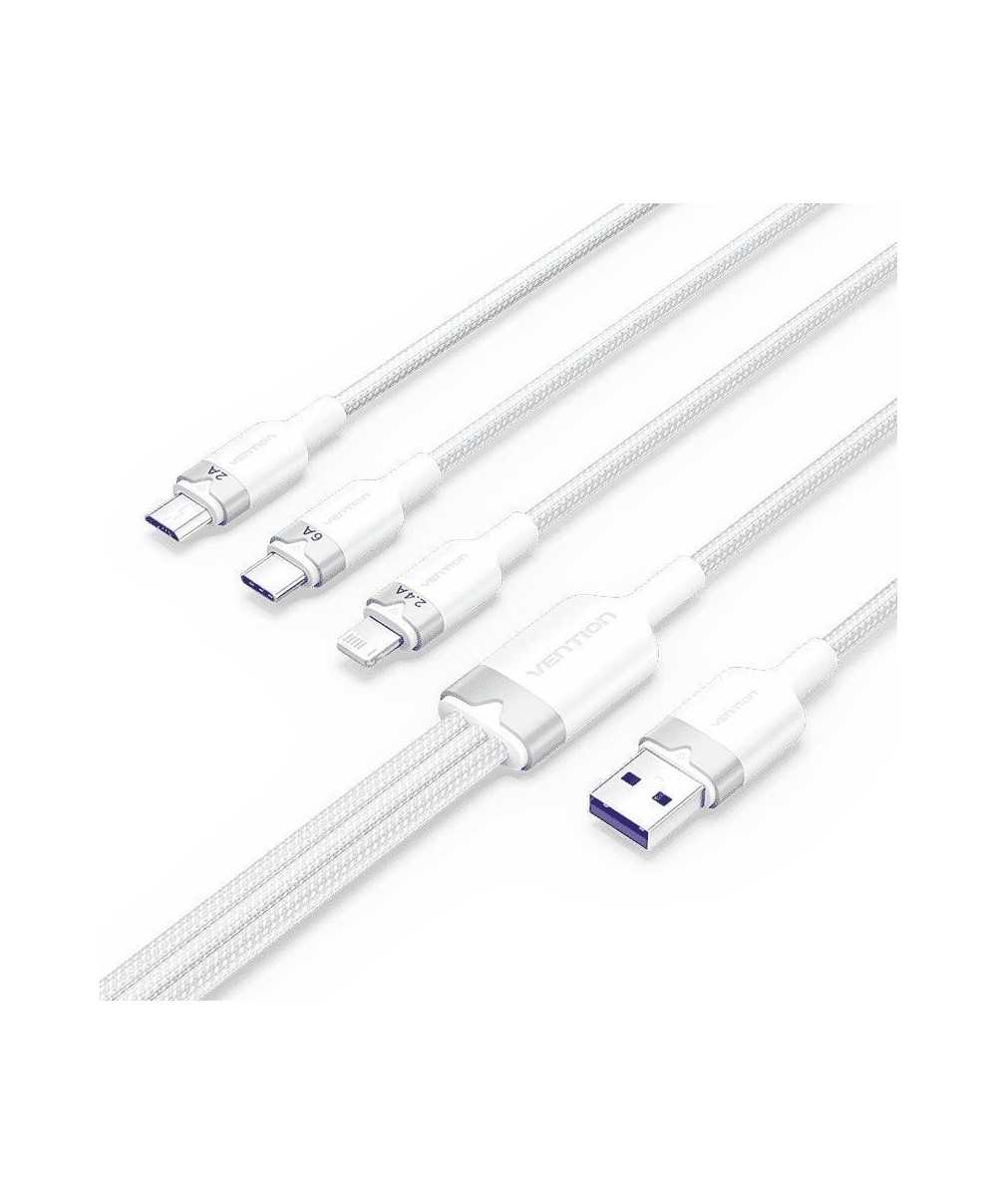 Presentamos el cable USB 2.0 3 en 1 Vention, una soluci de carga revolucionaria diseda para satisfacer todas tus necesidades de carga con un solo cable. Este elegante y moderno cable te permite cargar tres dispositivos diferentes al mismo tiempo, lo que lo hace perfecto tanto para usar en casa como en cualquier lugar. Dile adi a los cables enredados y a los mtiples cargadores: el cable 3 en 1 Vention simplifica tu vida.Caracterticas principales: