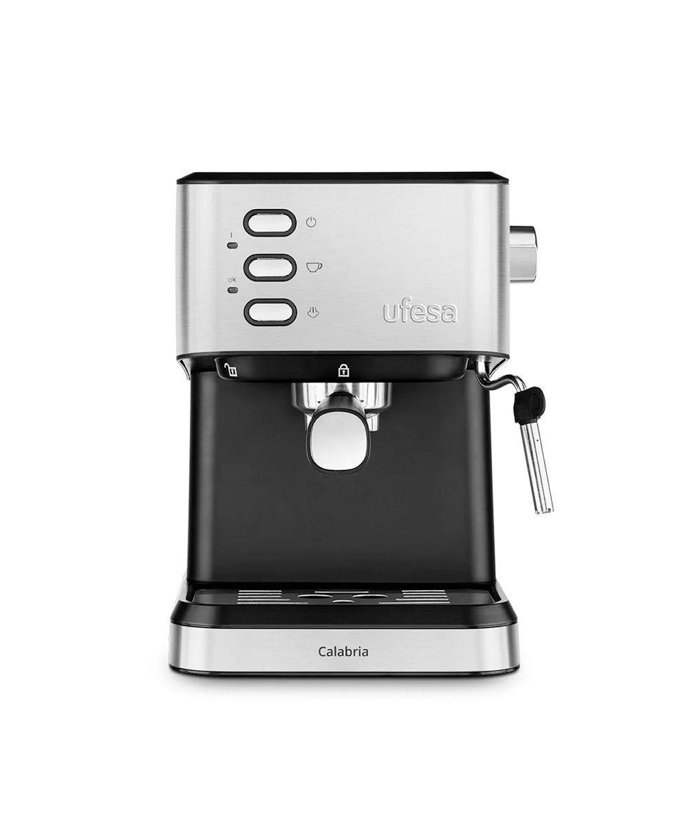 UFESA Cafetera express CALABRIA 20 bares, 1050w, deposito de agua extraible de 1,5L, Portafiltro para 1 o 2 tazas, Vaporizador, Bomba de presion 20 bares, bandeja calienta-tazas