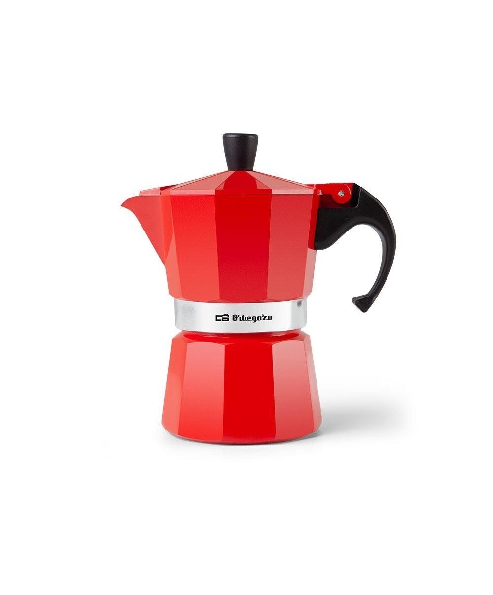 ORBEGOZO Cafetera aluminio 3 tazas Roja, para gas, vitro y electrico