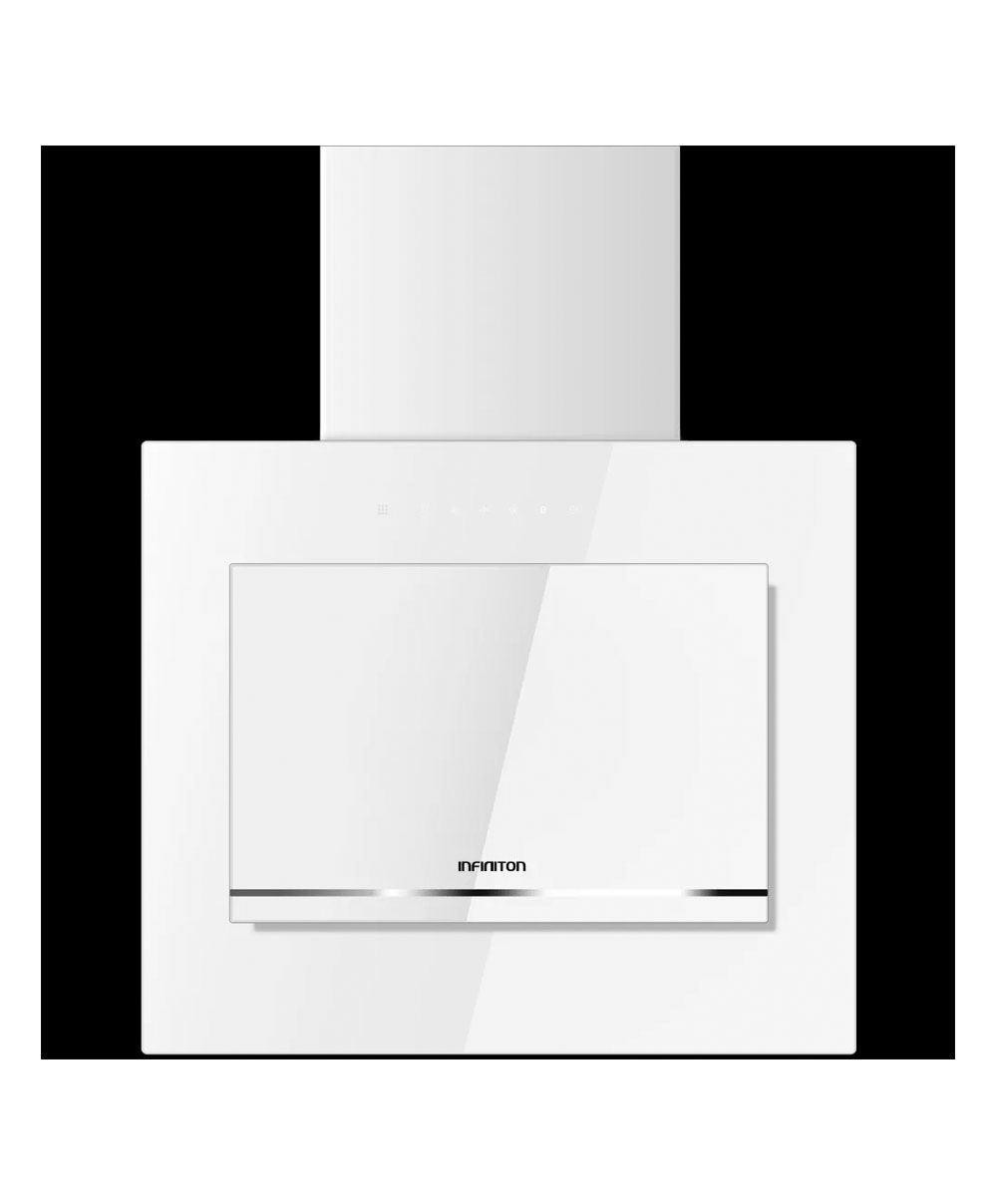 INFINITON Campana Vertical 60 cm. CRISTAL TEMPLADO BLANCO, 3 veloc. + potencia intensiva, 800m3/h, 67db, LUZ LED, TOUCH PANEL, filtro de aluminio