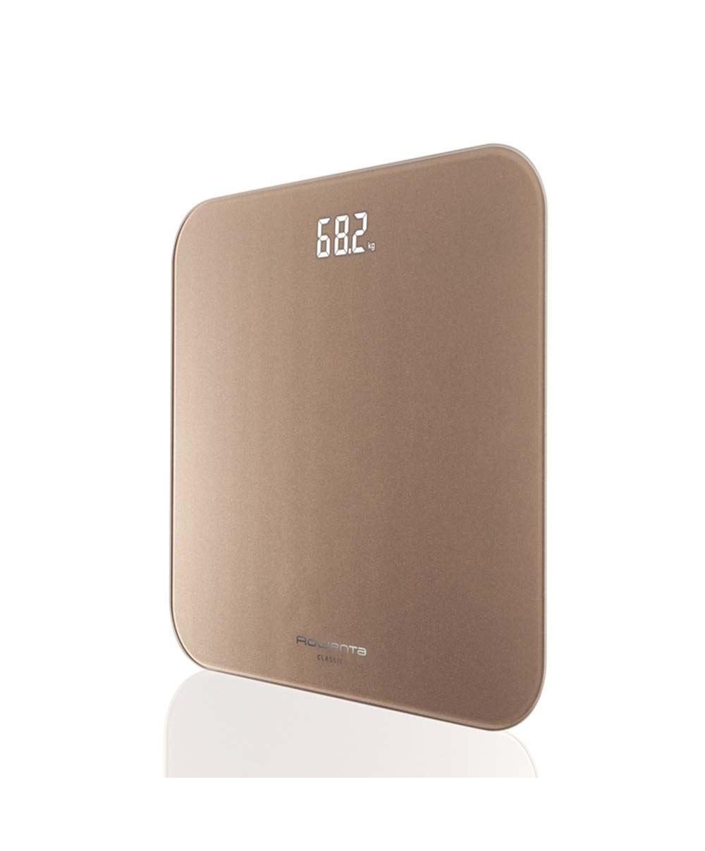 ROWENTA Bascula de baño Classic 3 Dorada, Pantalla invisible de facil lectura, 180Kg.