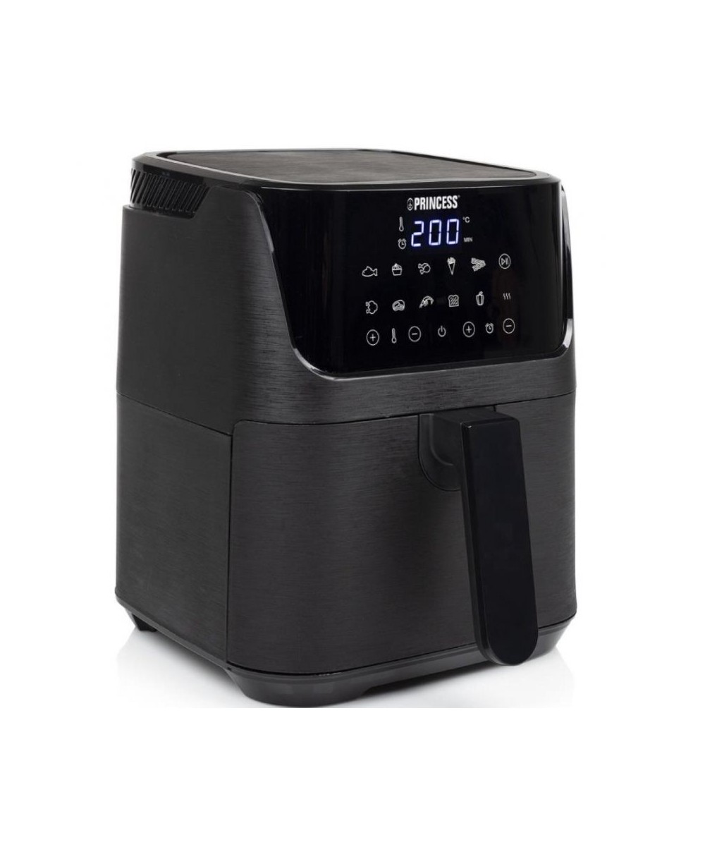 Con la freidora de aire digital Mini Princess 182031, podrás freír, hornear, preparar a la parrilla, cocinar y asar platos saludables para toda la familia. Sus 3,5 litros de capacidad permiten preparar hasta 5 raciones de patatas fritas crujientes y deliciosas de una sola vez. Gracias a la pantalla digital y a los 10 ajustes preprogramados, preparar comida en la freidora de aire es fácil y divertido. Su lujoso exterior negro cepillado resulta muy atractivo en cualquier cocina. Preparar platos saludables para toda la familia nunca había sido tan fácil.
