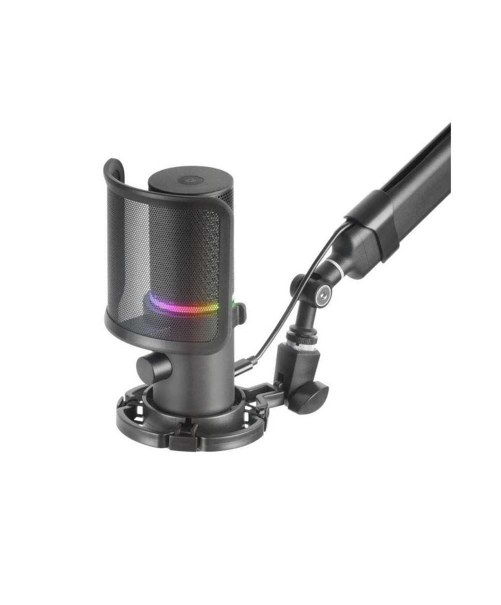Da el salto profesional definitivo con el MMIC-XT. Un micrófono de estudio de alta definición (ADC 192 kHz) con iluminación DYNAMIC ARGB RING, brazo mecánico sólido y ajustable omnidireccional, soporte antivibración, filtro antipop de malla metálica y entrada Jack de auriculares sin latencia. Conexión USB plug & play y construcción completamente de metal para una durabilidad extrema.