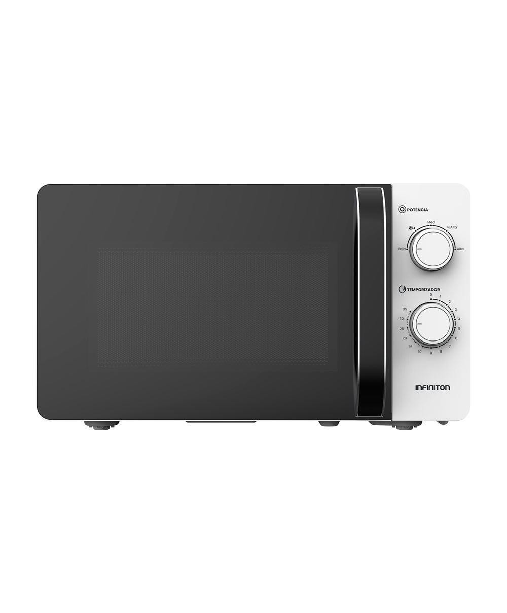 INFINITON Microondas 20L, BLANCO, 700W, apertura con TIRADOR, 24,5 cm plato, 5 niveles de fuerza, temporizador 35 min, 25,8X45,1x31,3 cm.