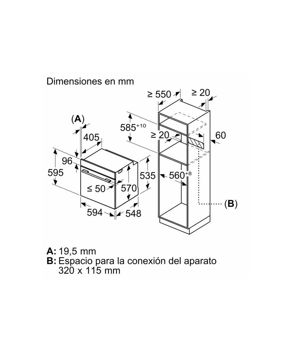Dimensiones de instalación necesarias (H x W x D): ....585-595 x 560-568 x 550 mm