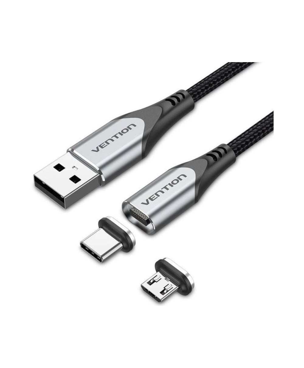 El cable magnético Vention 2 en 1 USB 2.0 Micro USB + USB-C es una solución conveniente y versátil para conectar y cargar varios dispositivos. El cable tiene dos conectores magnéticos intercambiables: Micro USB y USB-C, que se conectan fácilmente al cable con un fuerte imán. Puede dejar los conectores en los dispositivos para protegerlos de daños por enchufarlos y desenchufarlos con frecuencia. El cable admite una velocidad de transferencia de datos de hasta 480 Mb/s y la función Sync & Charge, que le permite transferir datos y cargar dispositivos simultáneamente con una corriente de hasta 3 A. El cable tiene 1 metro de largo, está hecho de calidad. materiales: carcasa de TPE, superficie de malla de nailon, conectores de aleación de aluminio. El cable es compatible con muchos dispositivos con puertos Micro USB y USB-C, como teléfonos inteligentes, tabletas, auriculares, etc.
