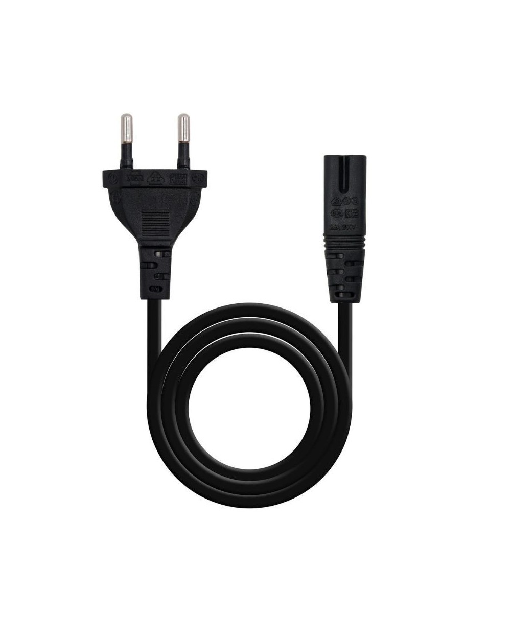 Cable de alimentación con forma 8 para cargar portátiles, equipos audiovisuales, consolas, y otros dispositivos electrónicos de baja potencia (consumo inferior a 1500W). Fabricado con conductor 100% cobre de AWG18.Especificaciones