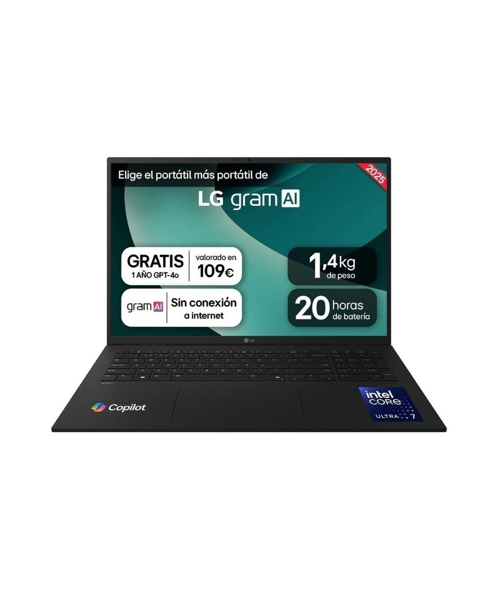 Portátil 17' LG gram - 17ZD90T, Intel Core Ultra 7, 32 GB RAM, 1 TB SSD, Panel IPS WQXGA (2560x1600), Ligero 1,3 kg, 20 h, Negro, Sin sistema operativo