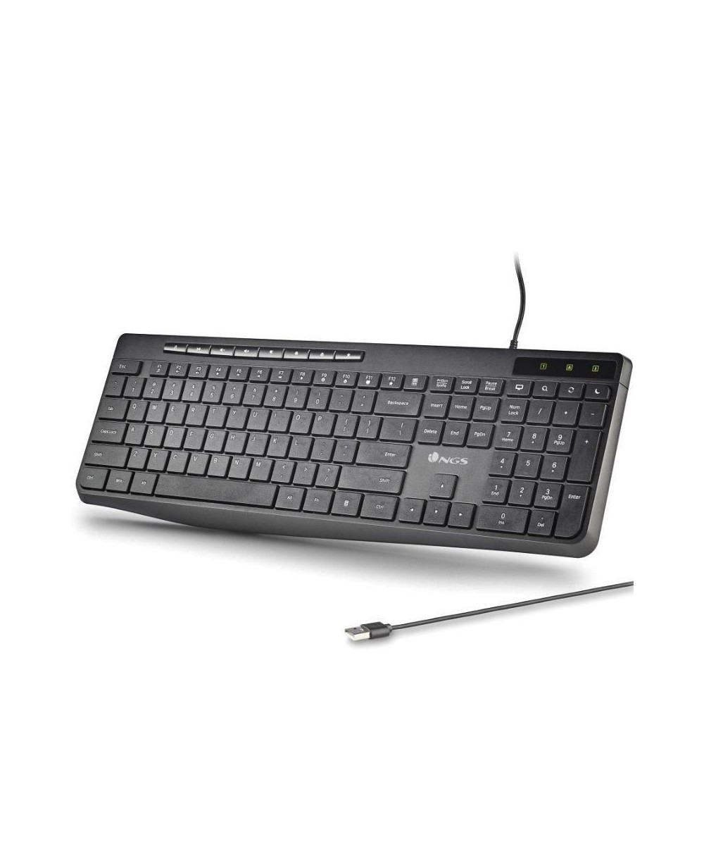 - Teclado multimedia plano con teclas silenciosas y 8+12 teclas multimedia.