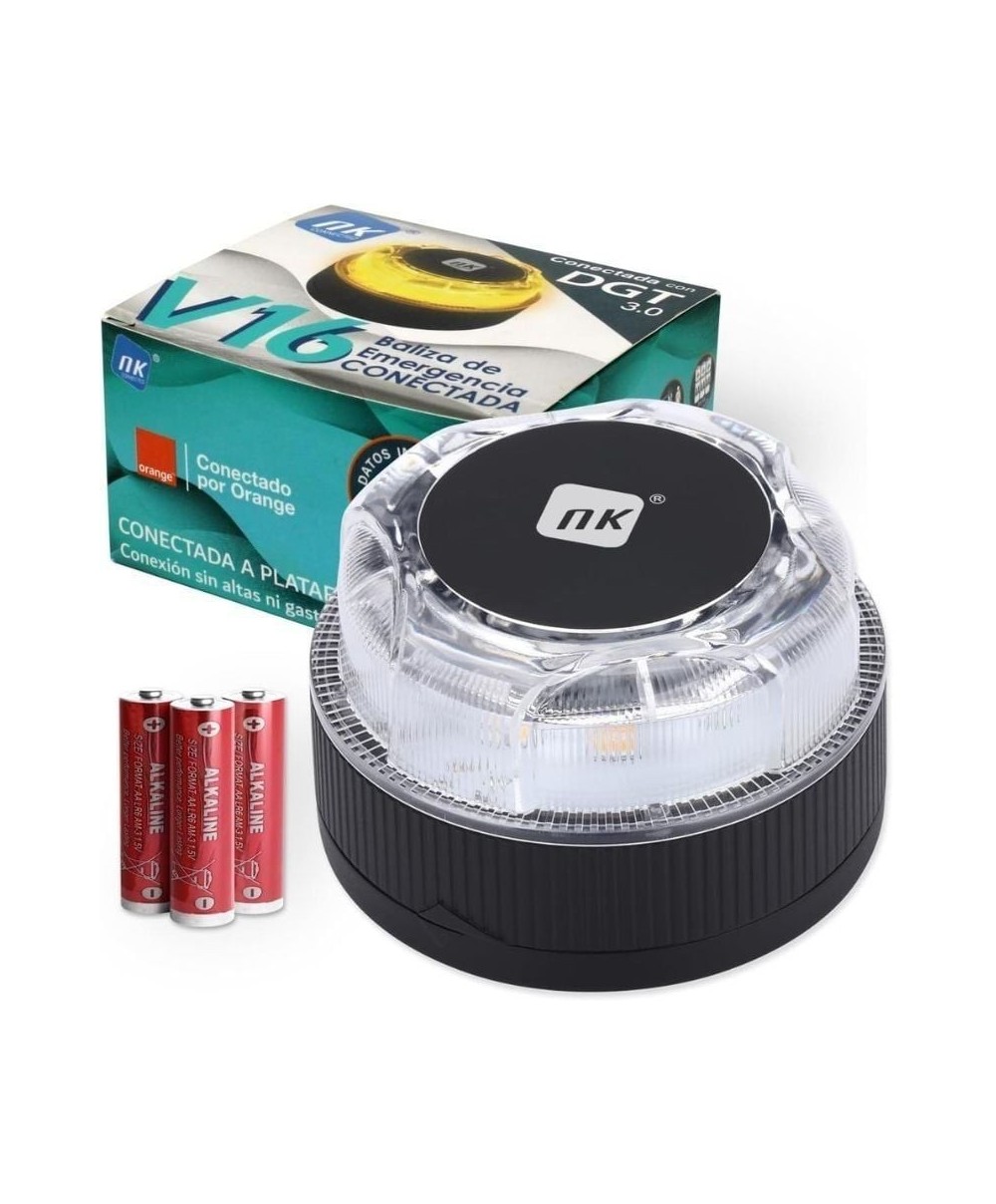 Cumple con la legislación vigente y anticípate a 2026 con la baliza de emergencia V16 de NK, homologada y conectada a la red oficial DGT 3.0. Su luz LED ámbar proporciona señalización de 360° con alcance hasta 1 km en condiciones meteorológicas adversas. Gracias a su sistema de fijación magnética, se coloca fácilmente sin necesidad de salir del vehículo. Funciona con pilas AA estándar (incluidas) y ofrece 12 años de servicio de datos sin coste adicional. Una vez activada, transmite tu ubicación cada 100 segundos mediante red LTE-M, sin necesidad de móvil, bluetooth ni aplicaciones. El código QR impreso en el envase y en la base permite comprobar su estado de conectividad, batería y posicionamiento GPS a través de validtuv16.com/def. Seguridad, cumplimiento legal y fiabilidad, todo en un solo dispositivo.Especificaciones