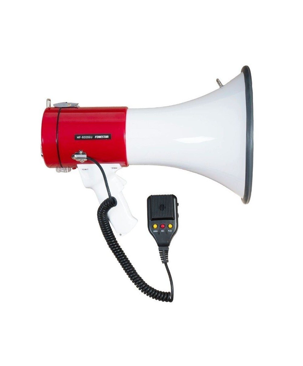Megáfono con sirena, reproductor USB/SD, grabador y micrófono de mano
