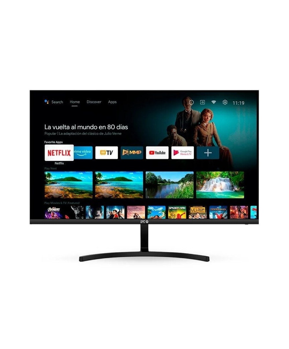 El SPC Smart Monitor 900024N es un monitor híbrido de 24' con panel VA y resolución Full HD (1920×1080), que combina funcionalidad de monitor con Android TV integrado. Su diseño ultradelgado, antirreflejos y antihuellas ofrece una visualización cómoda. Incluye mando a distancia con acceso directo a apps como Netflix, YouTube o Prime Video y control por voz. También cuenta con conectividad Wi-Fi, Bluetooth y Chromecast integrado para proyectar contenido desde el móvil.