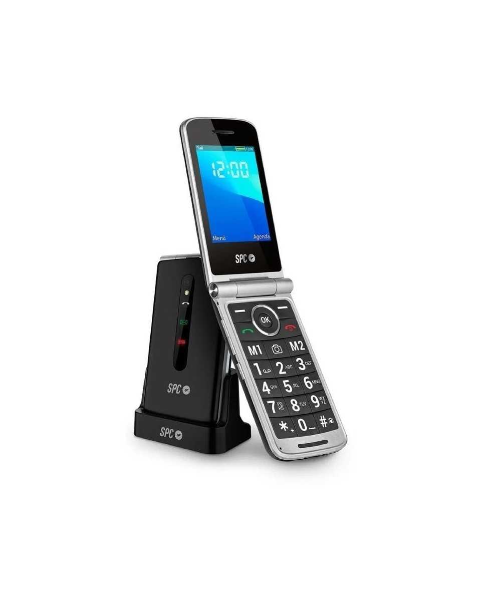 Teléfono móvil con conectividad 4G para personas mayores. Con tapa protectora, pantalla de 2,8”, amplio teclado, dos memorias directas, números grandes, botón SOS y Smart Help. Incluye base de carga.