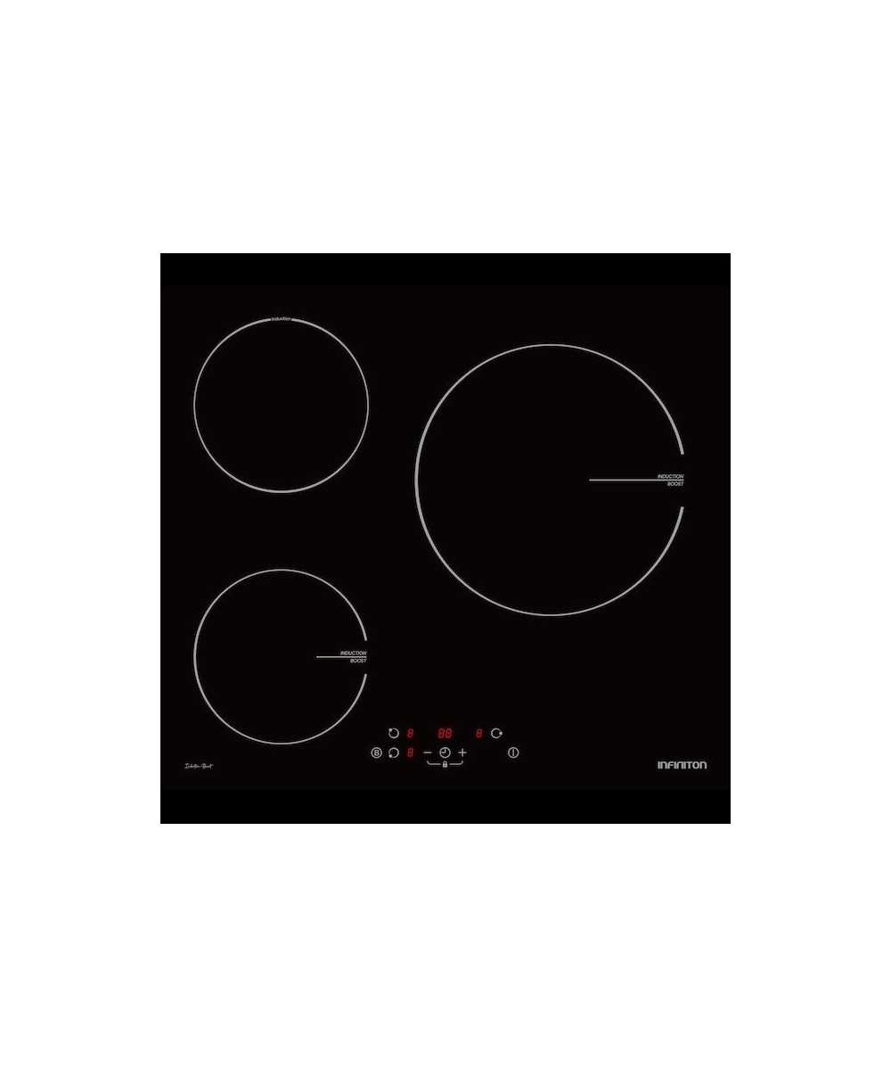 INFINITON Induccion 3F, zonas 28 cm, 18 cm y 16 cm. 9 niveles de potencia, control tactil, temporizador individual