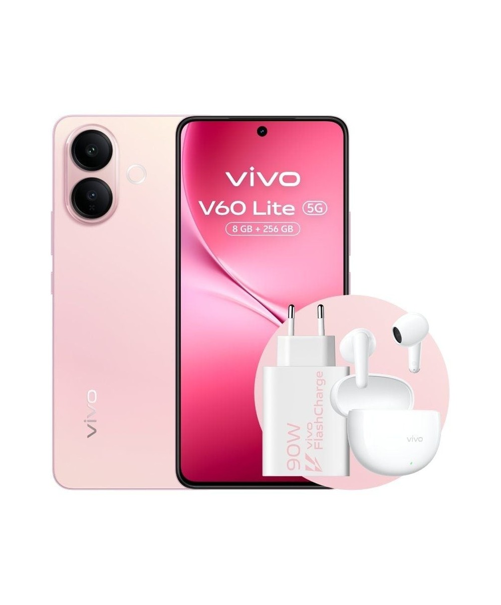 - En la caja: Vivo V60 Lite 5G, guía de inicio rápido, cable USB, cargador, herramienta de expulsión, funda protectora, película protectora aplicada, tarjeta de garantía