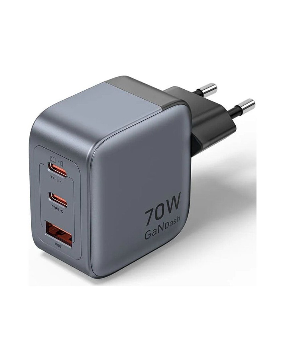 - Nombre: Cargador GaN USB de 3 puertos (C+C+A) (70W/70W/22,5W) enchufe EU gris