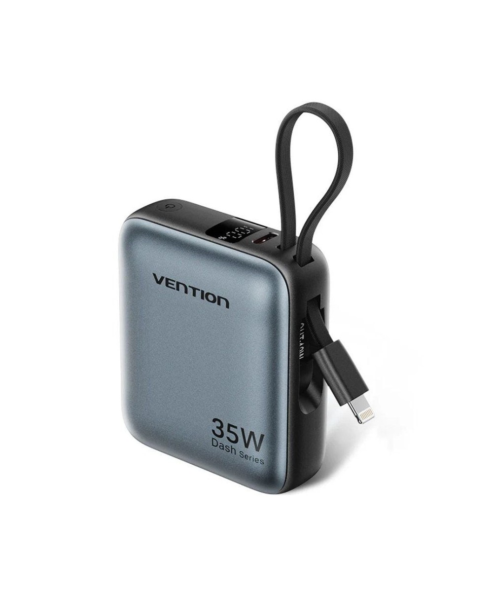 Vention Mini banco de energía de 10000 mAh (USB-C + USB-C/Lightning) con cables USB-C y Lightning integrados, 35 W, gris