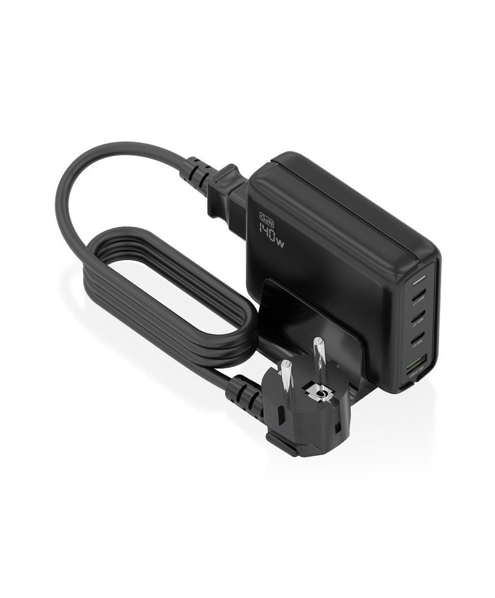 AISENS - CARGADOR SOBREMESA GaN 140W, 3xUSB-C PD3.1 QC4.0 QC5.0, 1xUSB-A QC3.0, NEGRO