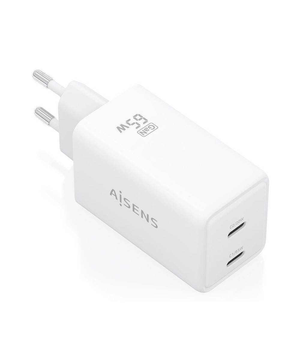 AISENS - CARGADOR GaN 65W, 2xUSB-C PD3.0 QC4.0, BLANCO