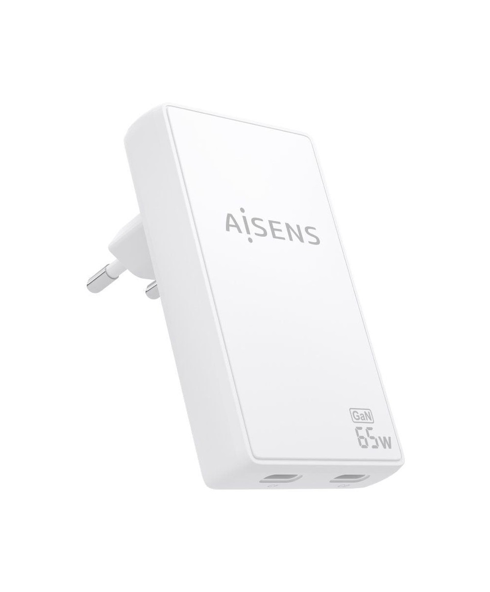 AISENS - CARGADOR DE PARED GaN ULTRA DELGADO 65W, 2xUSB-C PD3.0 QC4.0, BLANCO