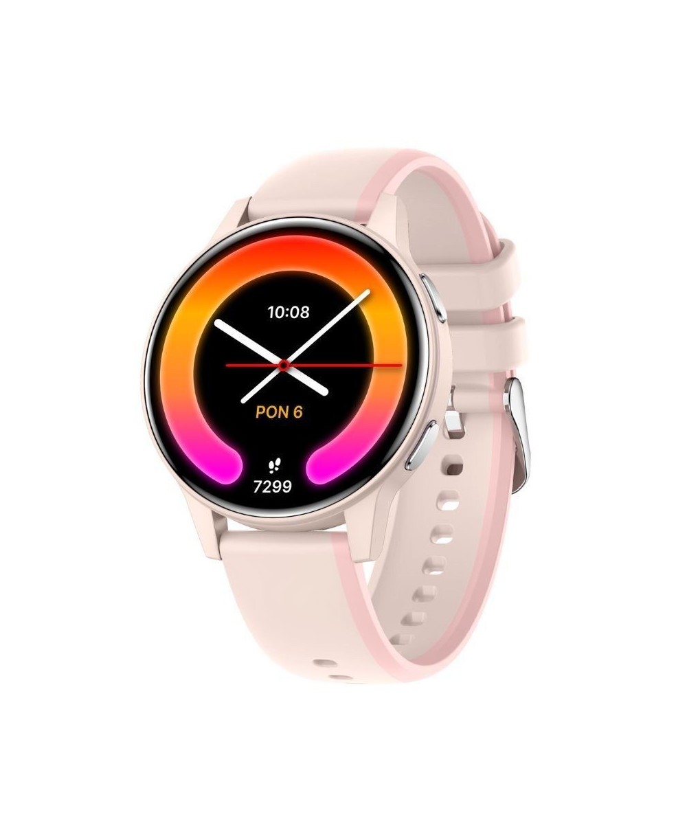- Funciones: Hora y fecha, monitor de frecuencia cardíaca, modos deportivos, monitoreo del sueño, contador de calorías, clima, recordatorio de inactividad, historial de actividades, podómetro, recordatorio de hidratación, notificaciones, cronómetro/temporizador, calendario menstrual, cambio de esfera, encontrar reloj/teléfono, directorio telefónico, llamadas telefónicas, notificaciones SMS, visualización de notificaciones, iluminación con movimiento de muñeca, control de música, cámara remota, calculadora, altavoz, conversaciones BT