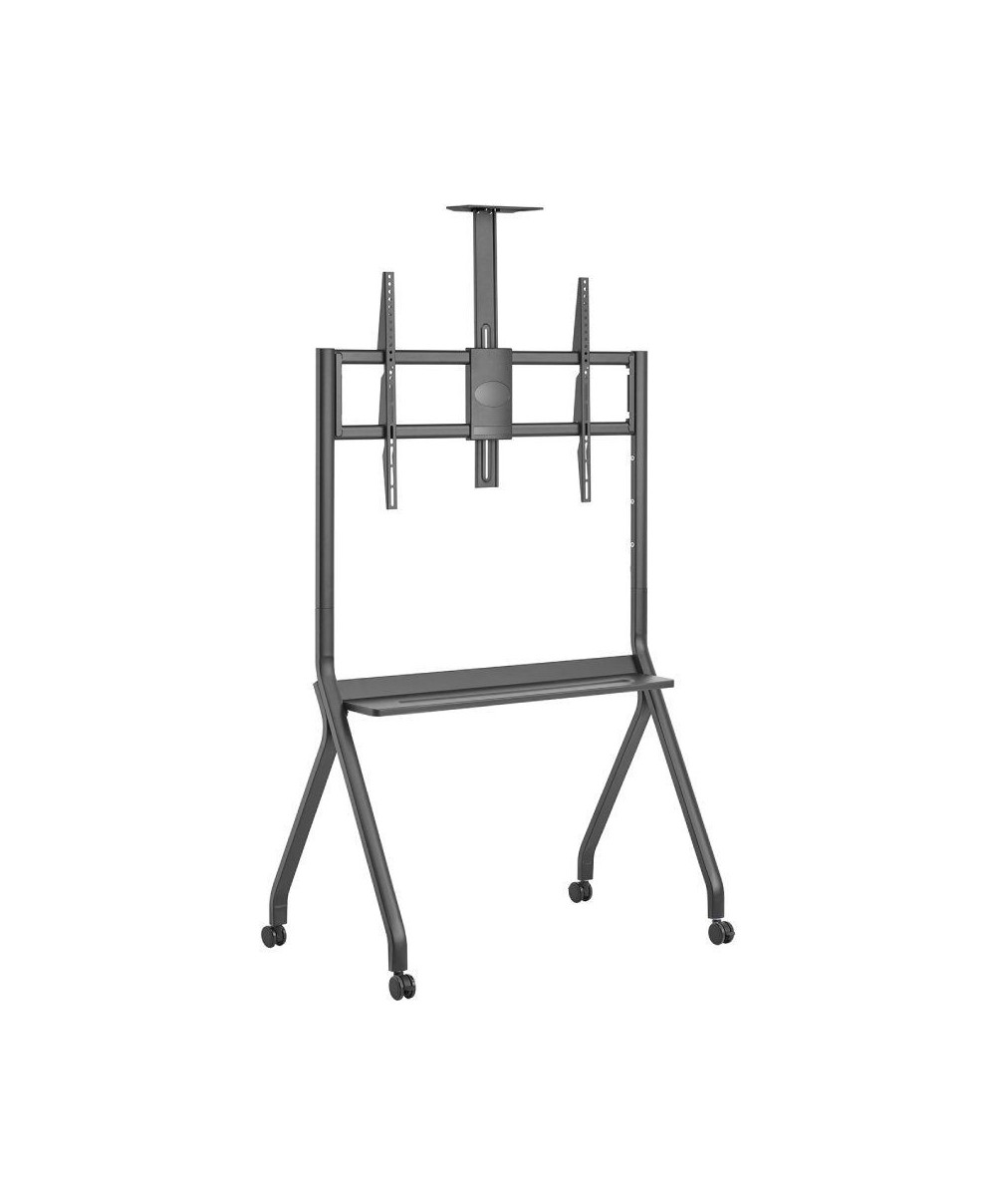 AISENS - SOPORTE DE SUELO PRO CON RUEDA, 1 BANDEJA Y SOPORTE DE CÁMARA PARA PANTALLA INTERACTIVA/TV 120KG DE 55-100, NEGRO