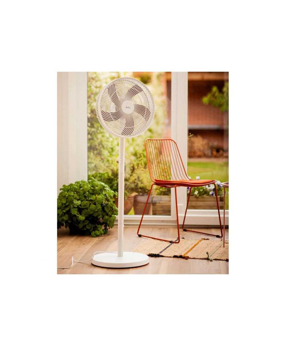 VENTILADOR DE PIE3 velocidades.Cabezal inclinable 18ºOscilación automática.Base de apoyo redonda, gran estabilidad.Rejilla protectora, delantera y trasera.5 aspas.Nivel sonoro máximo: 65 dB.Longitud del cable 2,50 mRPM 900/1050/1200rpm+-10%Flujo de aire 2646 m3/hDiámetro base: 40 cm./ Altura: 128 cm.Peso: 5 kg.Voltaje 230 V.Potencia 50 W.