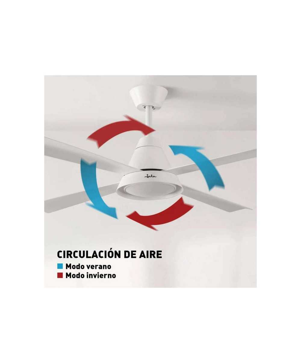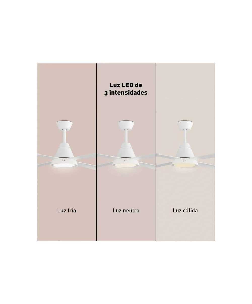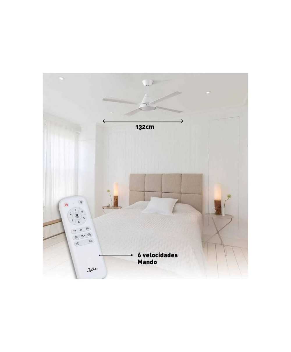 CON LUZ6 velocidades.Función Reverse invierno/verano: refresca en verano y distribuye el calor en invierno. Luz LED de tres intensidades: luz fría, neutra y cálida. Perfecto para estancias de 20 m² a 30 m². Programable 1h, 4h, 8h. Eficiente motor DC de cobre. Nivel sonoro 45 Db. Máx. Mando a distancia: Botón encendido/ apagado. Control de velocidad. Botón de iluminación. Temporizador de apagado. Modo aire natural. Modo invierno.