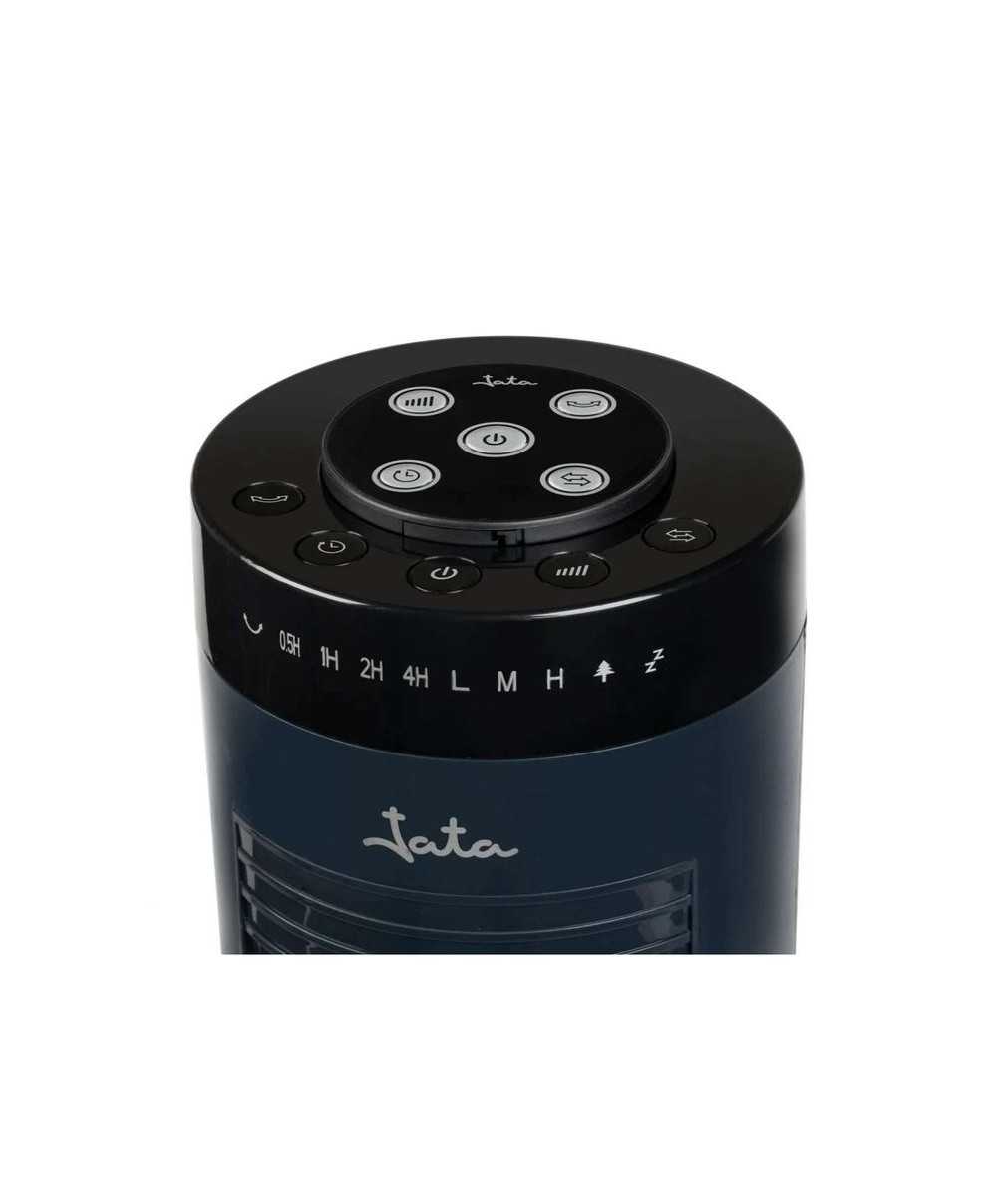 Ventilador de torre con mando a distancia.
