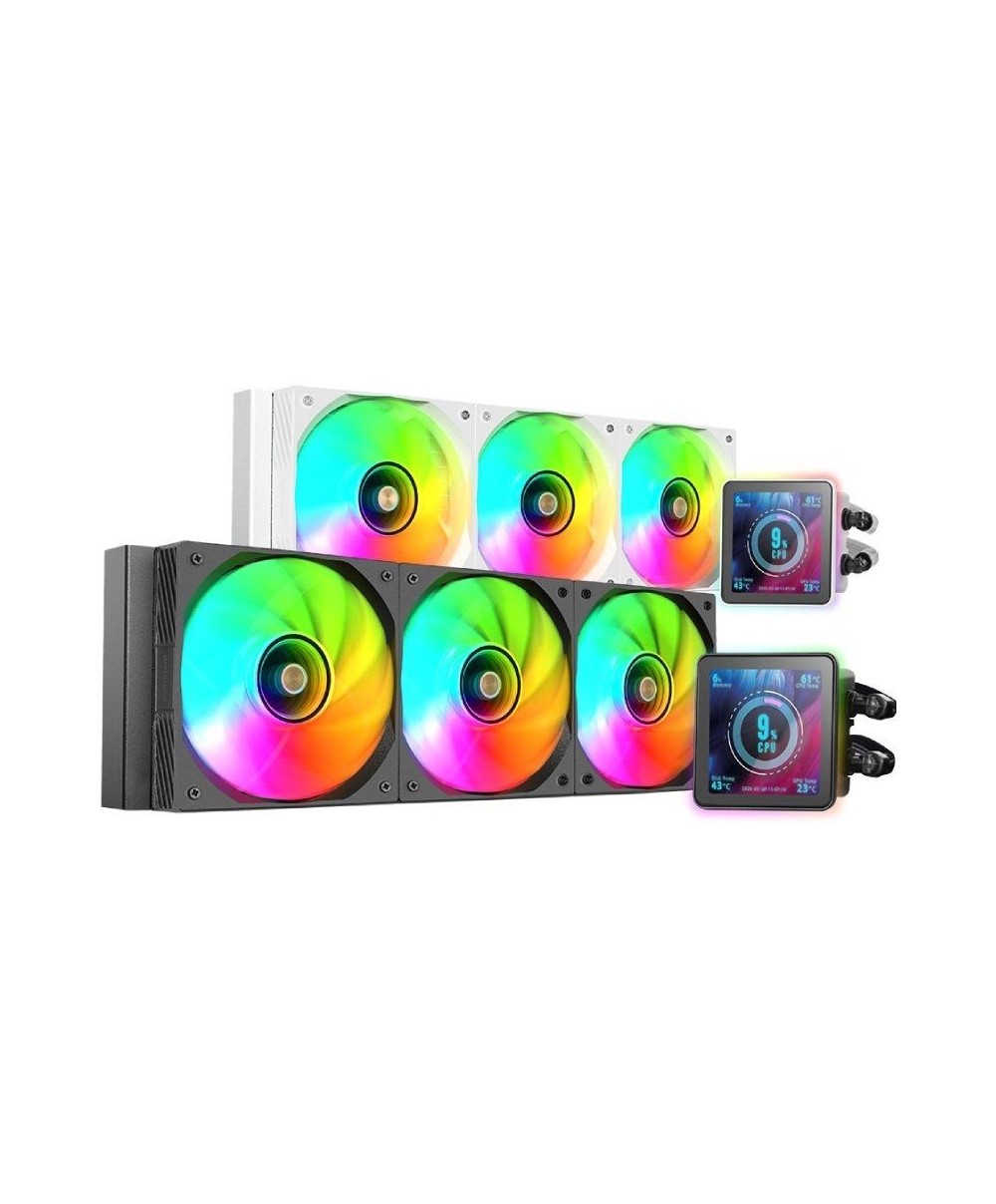 Lleva tu ordenador al siguiente nivel con el nuevo referente en refrigeración líquida AIO. ML-VISIONPRO360 fusiona un rendimiento térmico de élite con un diseño espectacular gracias a sus 3x ventiladores ARGB Infinity Mirror y su pantalla IPS de 4” extraíble con base magnética y totalmente personalizable, que puedes colocar dentro o fuera de la torre para lograr el máximo impacto visual. Compatible con Intel y AMD y preparado para CPUs de hasta 600W TDP, este kit está creado para quienes exigen máxima potencia, estilo y control absoluto.