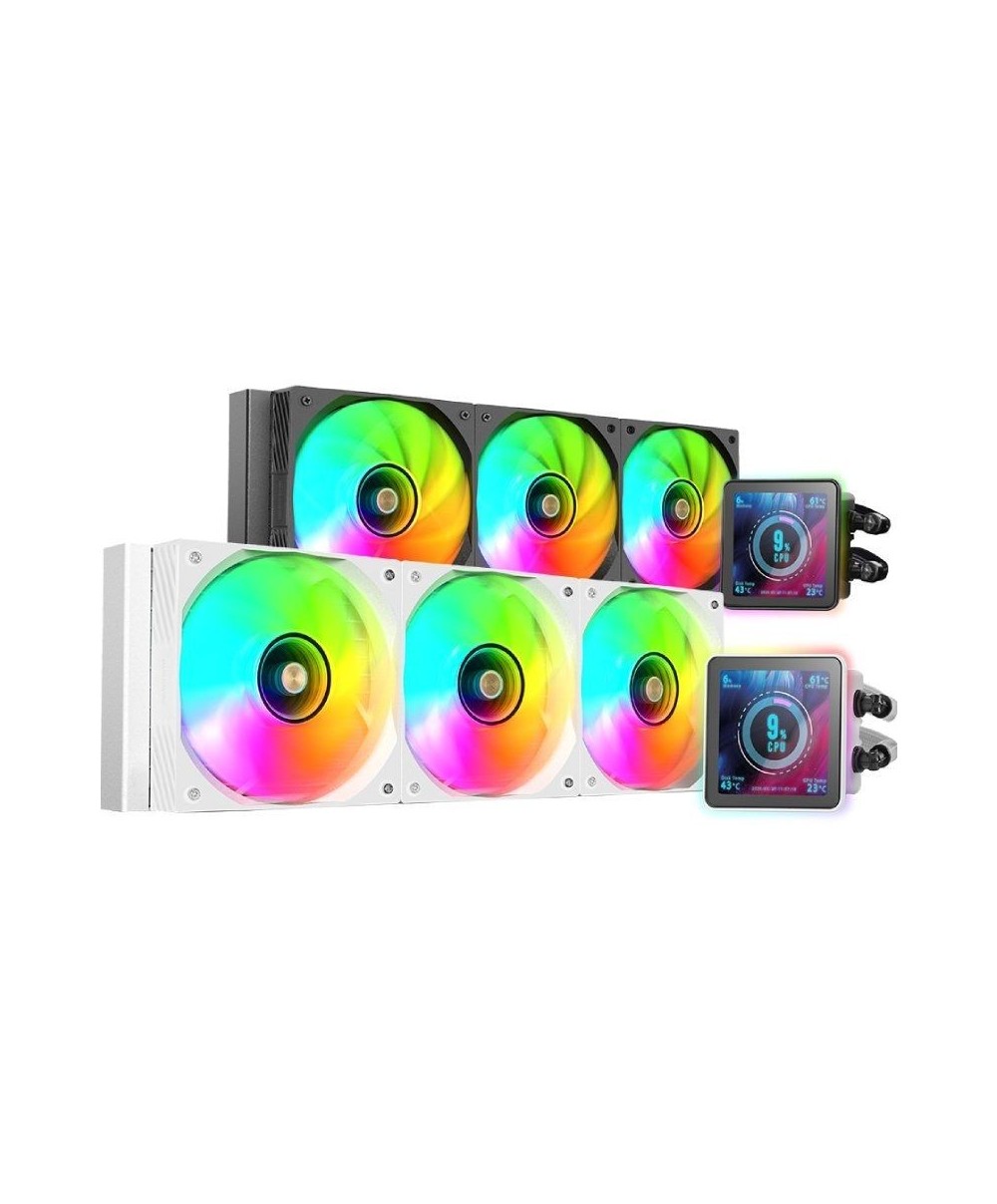 Lleva tu ordenador al siguiente nivel con el nuevo referente en refrigeración líquida AIO. ML-VISIONPRO360 fusiona un rendimiento térmico de élite con un diseño espectacular gracias a sus 3x ventiladores ARGB Infinity Mirror y su pantalla IPS de 4” extraíble con base magnética y totalmente personalizable, que puedes colocar dentro o fuera de la torre para lograr el máximo impacto visual. Compatible con Intel y AMD y preparado para CPUs de hasta 600W TDP, este kit está creado para quienes exigen máxima potencia, estilo y control absoluto.