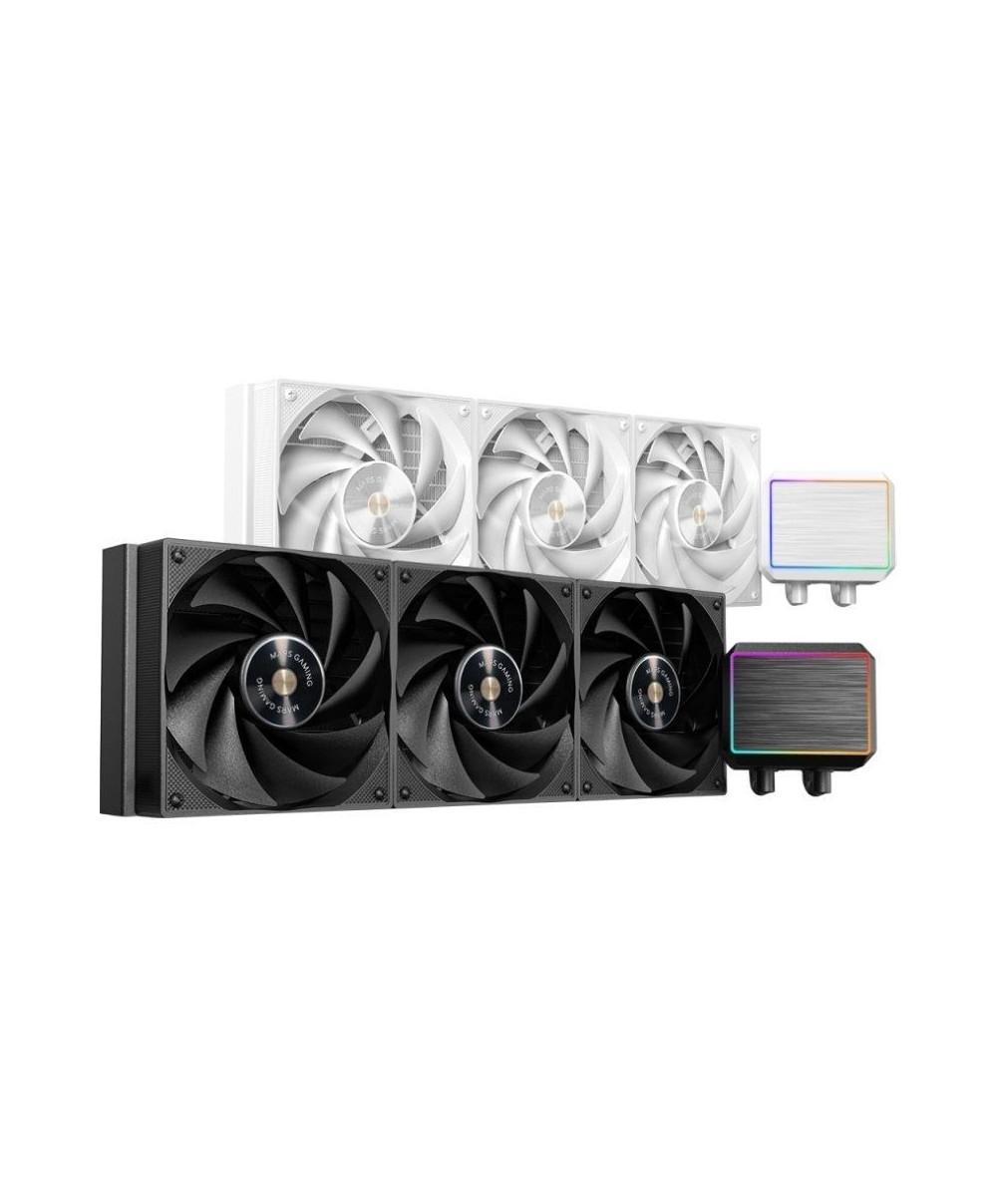 Con tres ventiladores de 120 mm con núcleo de cobre y aluminio, con rodamientos FDB para ofrecer un flujo de aire estable y silencioso, minimiza el ruido y maximiza la durabilidad, asegurando un funcionamiento fluido y discreto, perfecto para entornos gaming y profesionales.
